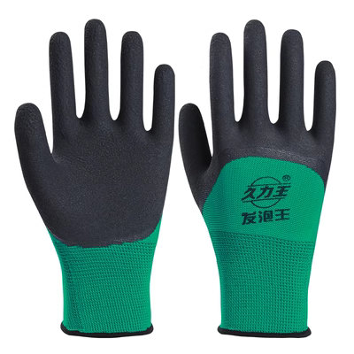 Jiuliwang chính hãng xốp màu xanh lá cây vua chịu mài mòn chống trượt cao su thoáng khí mủ cao su lao động làm vườn găng tay cao su găng tay vải bảo hộ găng tay bảo hộ 3m