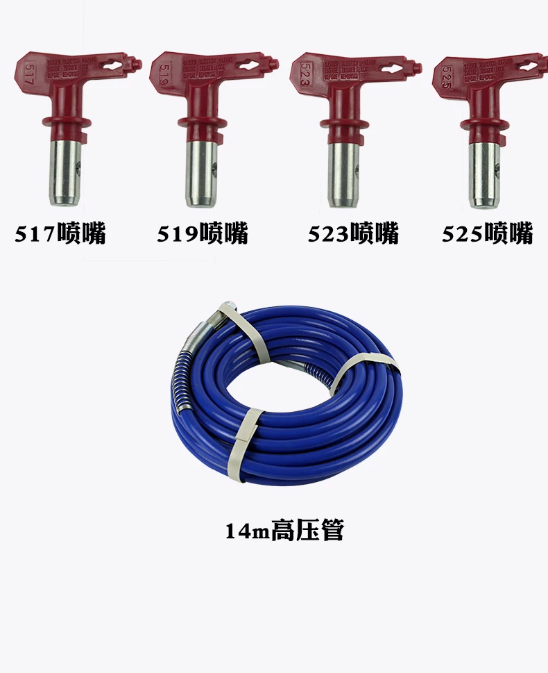 Phân loại màu sắc: Ống cao áp, thanh nối dài 50cm, thanh nối dài 100cm, giá đỡ đầu phun, súng phun (không có đầu phun), đầu phun 525, đầu phun 521, khớp nối vạn năng, đầu phun 519, đầu phun 517