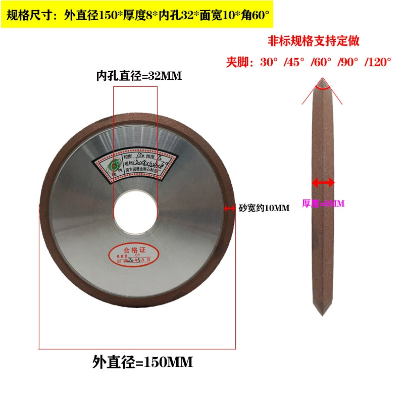 Bánh mài vát đôi nhựa kim cương Bánh mài vát đôi 90° 125/150*8*32*10*30 độ Gói bánh mài 60° mai luoi hop kim đá mài inox Đá mài