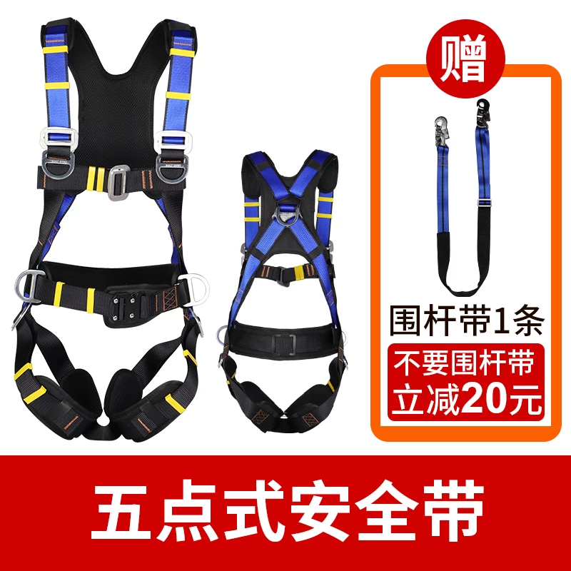 Bộ bảo vệ thắt lưng năm điểm toàn thân cho đai an toàn làm việc ở độ cao cao, chống mài mòn, chống rơi, kết cấu điện ngoài trời màu đen dây đai an toàn toàn thân dây đai an toàn 2 móc