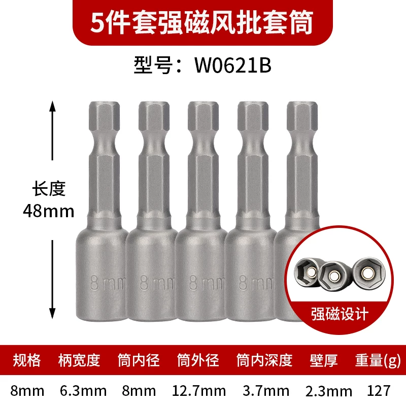 Bộ đầu ổ cắm cờ lê điện Power Lion Bộ đầu từ tính mạnh Nhỏ bay bên ngoài lục giác 8mm Máy khoan điện cầm tay bằng khí nén Lô gió mở rộng