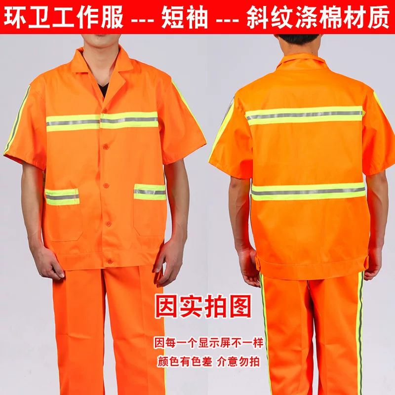 Bộ quần áo làm việc vệ sinh ngắn tay mùa hè, làm sạch thoáng khí, công nhân bảo trì đường bộ, làm sạch tài sản, quần áo an toàn phản quang quần áo chống tĩnh điện quần áo chống tĩnh điện