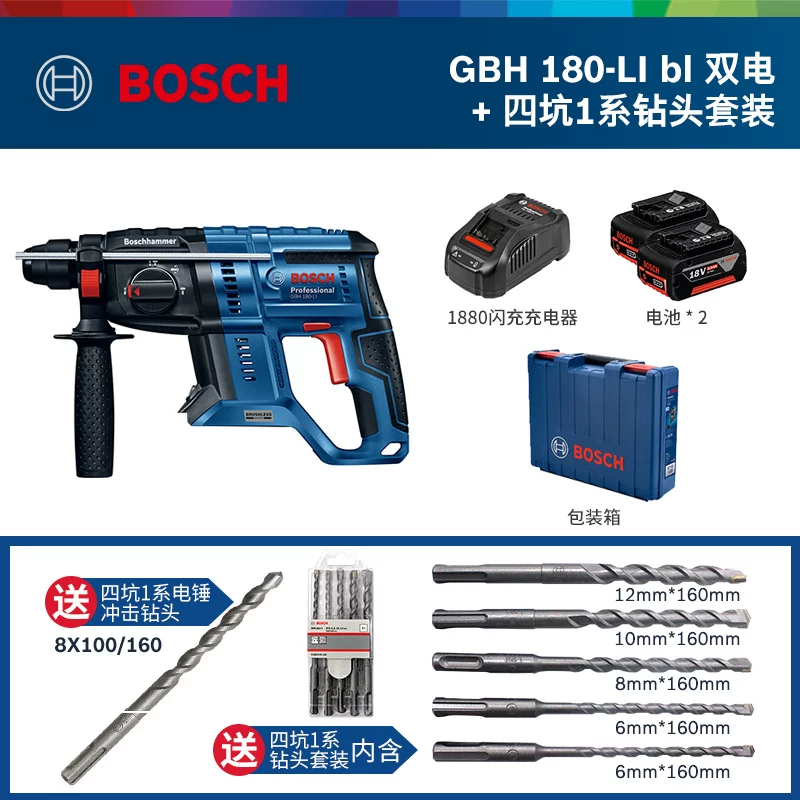 Búa điện Bosch búa điện Máy khoan va đập bê tông đa chức năng Dụng cụ điện chuyên nghiệp Búa điện không chổi than GBH180-LI khoan pin Máy khoan đa năng