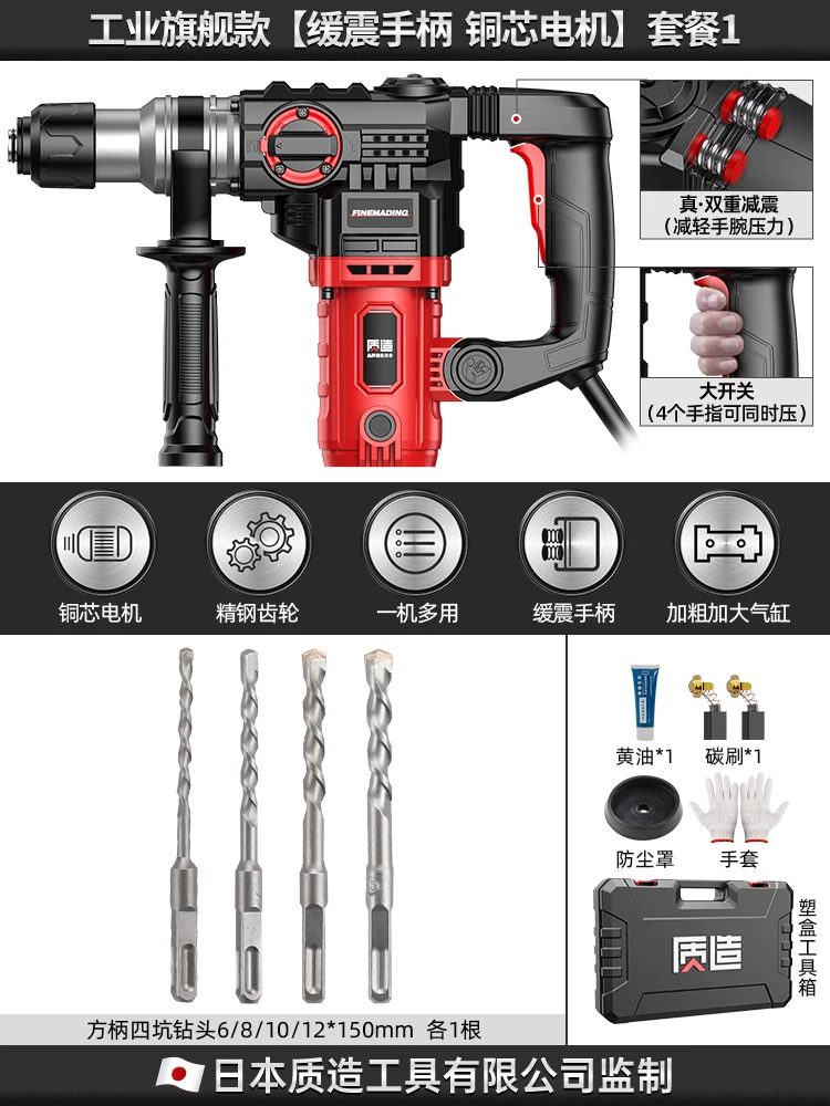 Búa điện đa năng công suất cao được sản xuất tại Nhật Bản Xẻng điện đa chức năng Máy khoan va đập Máy khoan điện công nghiệp cấp công nghiệp phá dỡ búa điện đục rãnh tường khoan bê tông bosch Máy khoan đa năng