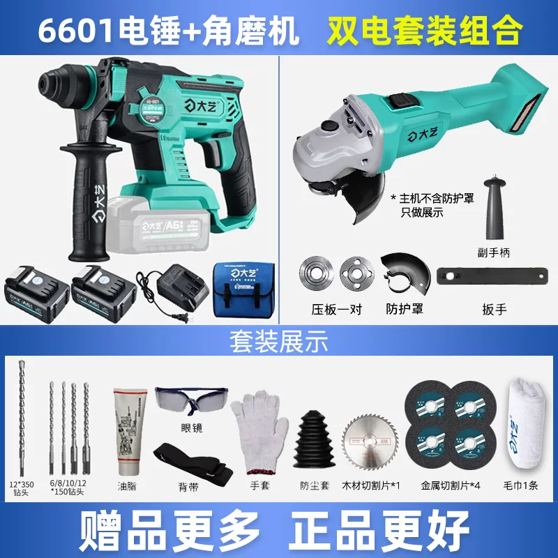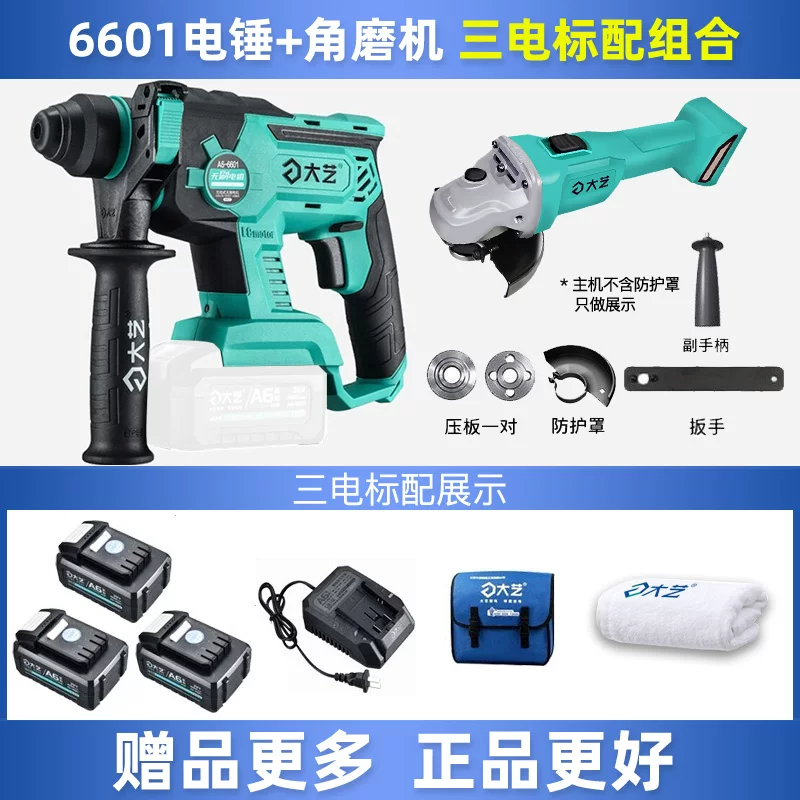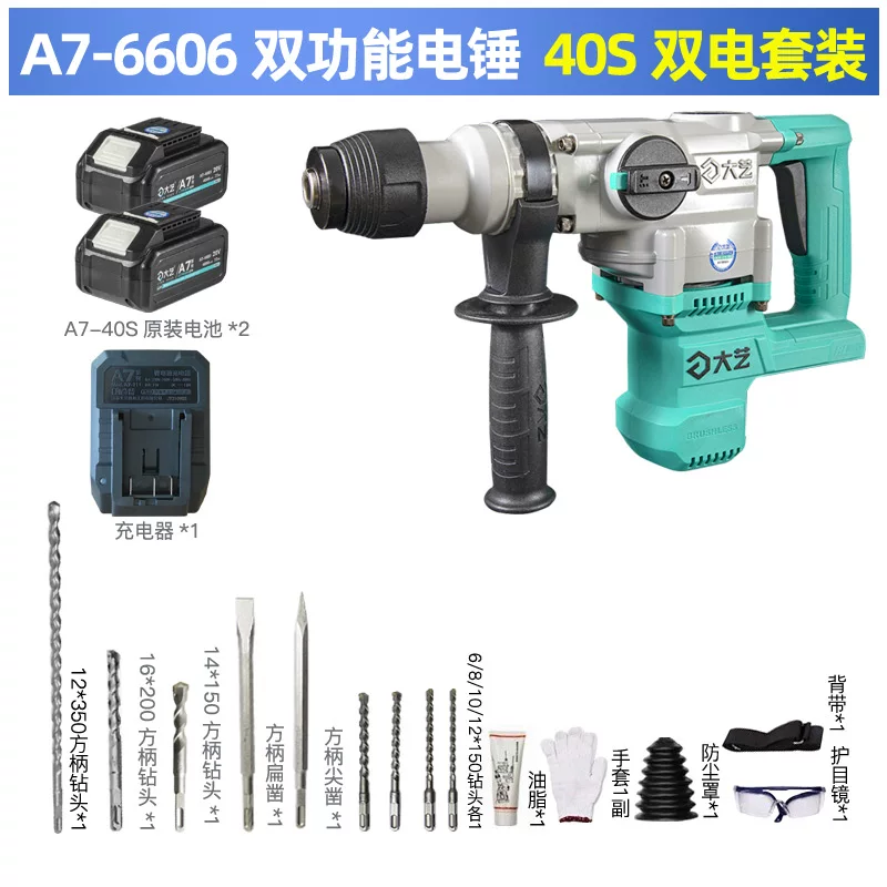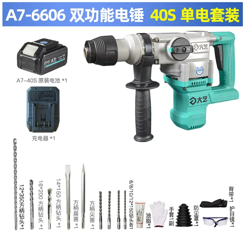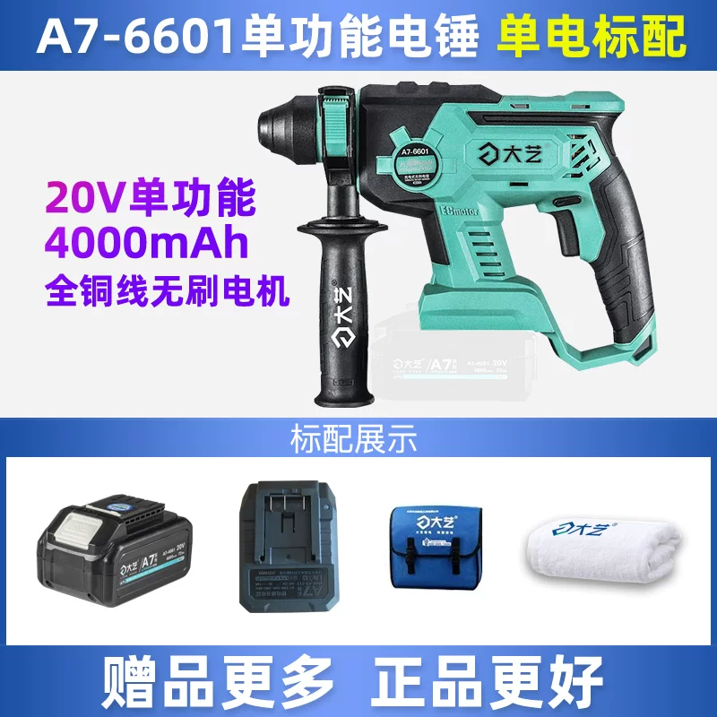 Búa điện lithium có thể sạc lại Dayi chính hãng Búa điện cấp công nghiệp 40s Búa điện lithium không chổi điện Búa điện không chổi than có thể sạc lại Máy khoan va đập 6601-A7 pin máy khoan Máy khoan đa năng