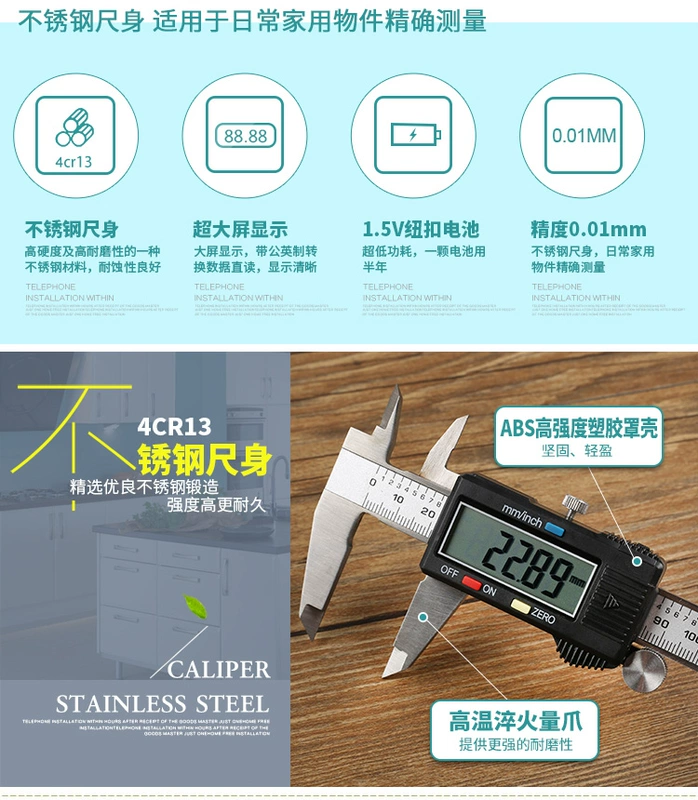 Chính hãng hộ gia đình thép không gỉ màn hình hiển thị kỹ thuật số Vernier Caliper màn hình hiển thị kỹ thuật số Caliper điện tử thước cặp 0-150/200/300mm kẹp cơ khí thước cặp du xích Thước kẹp điện tử