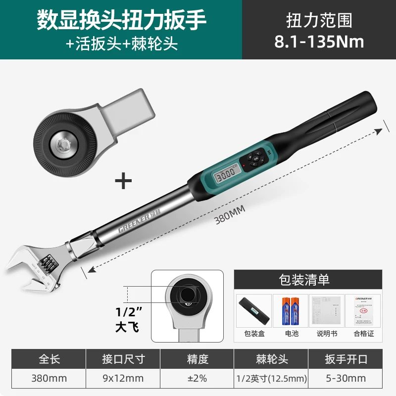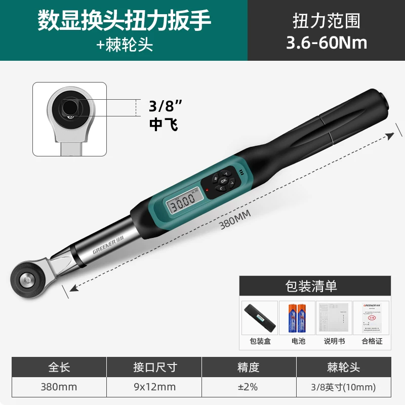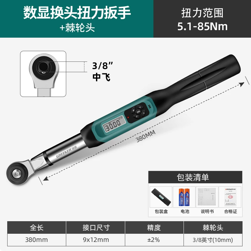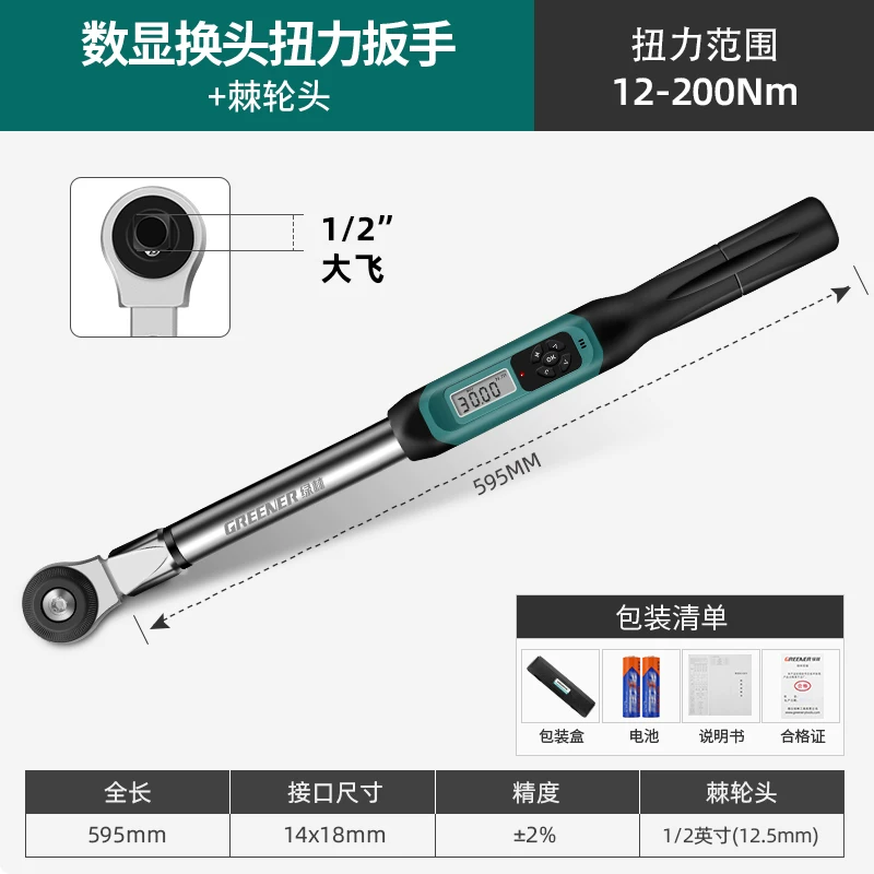 Cờ lê mô-men xoắn có độ chính xác cao rừng xanh cài sẵn màn hình kỹ thuật số kg cờ lê mô-men xoắn có thể điều chỉnh cờ lê mô-men xoắn bugi