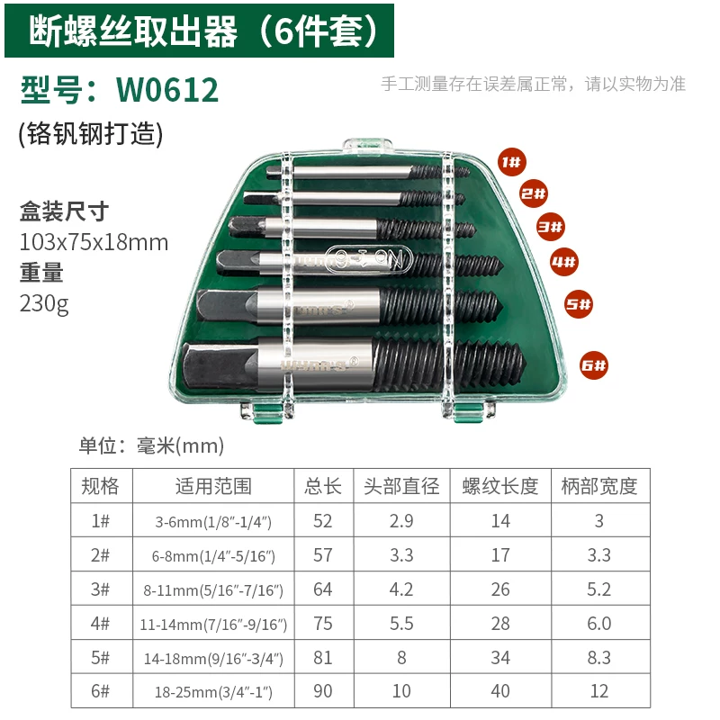 Phân loại màu sắc: (Đặc biệt cho ống 4 điểm) W3313A (Thông dụng cho ống 4 điểm và 6 điểm) W3313B Dụng cụ tháo vít (bộ 5 chiếc) W0611 Dụng cụ vặn vít (bộ 6 chiếc) W0612 Dụng cụ chuyên dụng để bẻ vít W3314 Nâng cấp Bộ hai chiếc, chuyên dụng cho ống 4 điểm W3311 Bộ hai chiếc 6 chiếc đa năng W3312 Bộ 5 chiếc mẫu điện có trụ W3310