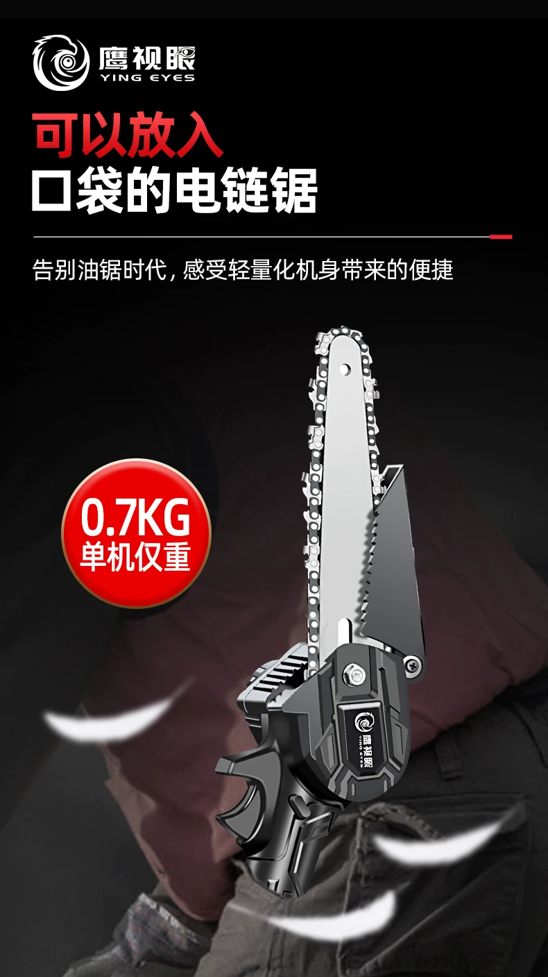 Cưa xích điện lithium không chổi than có thể sạc lại hộ gia đình cầm tay nhỏ củi cưa xích điện khai thác gỗ ngoài trời và cưa củi một tay máy cưa xích chạy pin lưỡi cưa xích Máy cưa xích