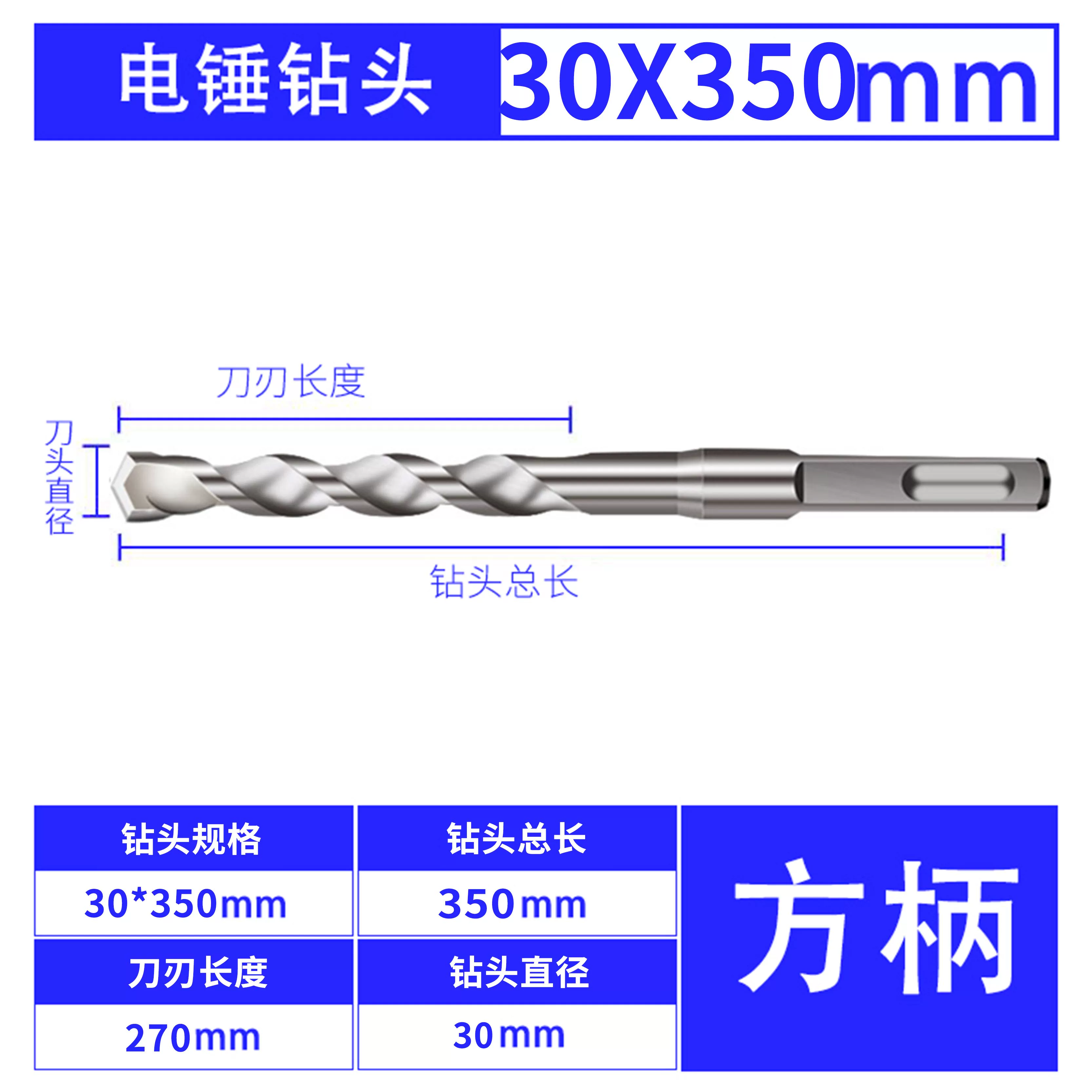 Đan Mạch tay cầm vuông thép vonfram búa điện tác động hợp kim bê tông xi măng tường đá cẩm thạch mũi khoan 350mm mũi khoan đá mũi khoan sắt Mũi khoan