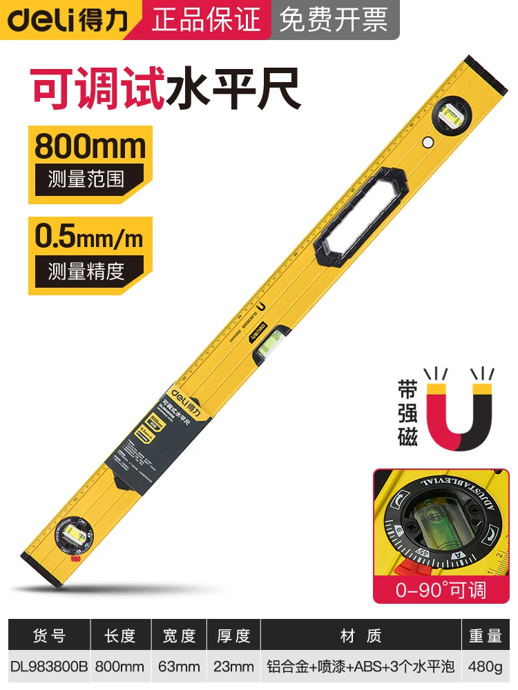 thước lỗ ban điện tử Deli cấp thước có độ chính xác cao cấp thước phẳng nước thước cân bằng quạt nhỏ từ tính mạnh chống rơi hộ gia đình thước thước thủy mini thước dây phong thủy Thước thủy thường