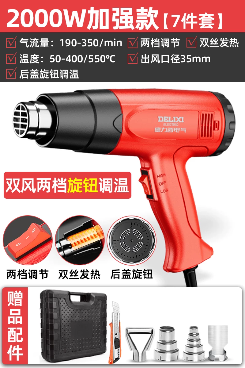 Delixi Súng hơi nóng điện nhỏ điều chỉnh tốc độ điều chỉnh nhiệt độ vẻ đẹp đường may phim đặc biệt súng nướng bánh ống co nhiệt súng sưởi điện máy khò nhiệt cũ