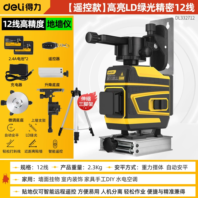 Đồng hồ đo mức 12 dòng mạnh mẽ Ánh sáng xanh lục có độ chính xác cao Ánh sáng mạnh ánh sáng mỏng tia hồng ngoại ánh sáng xanh hồng ngoại Hình dán dán tường Máy khoan đa năng