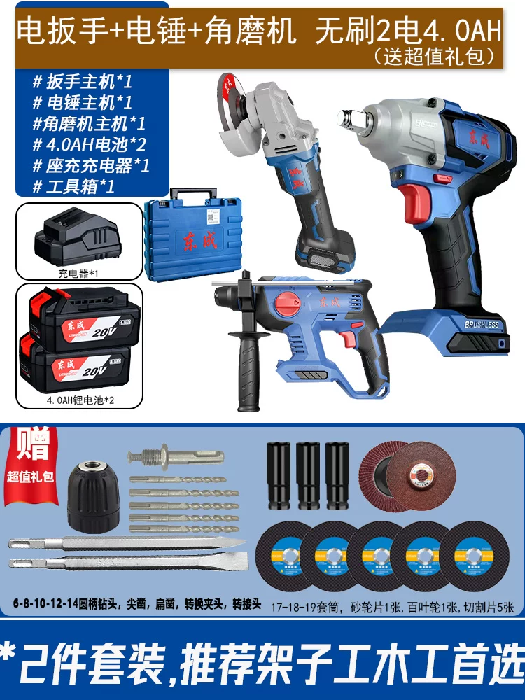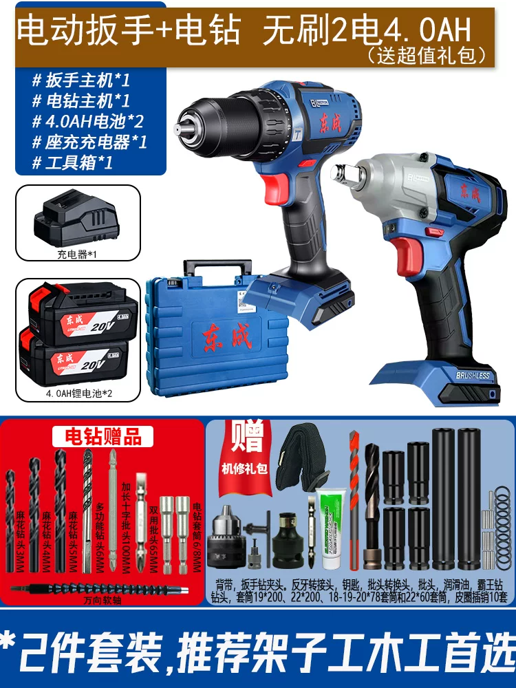 Dongcheng cờ lê điện không chổi than mô-men xoắn cao lithium-ion tác động lên kệ súng hơi công nhân Dongcheng sửa chữa ô tô mạnh mẽ pad sạc pin may khoan Máy khoan đa năng