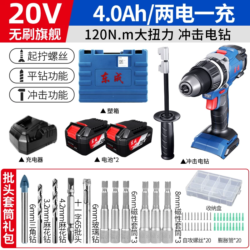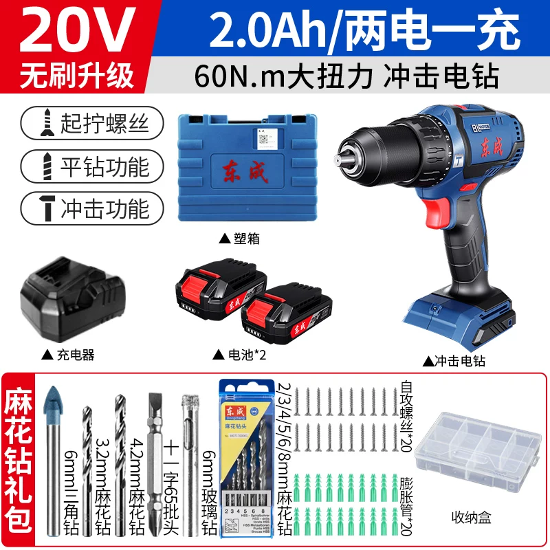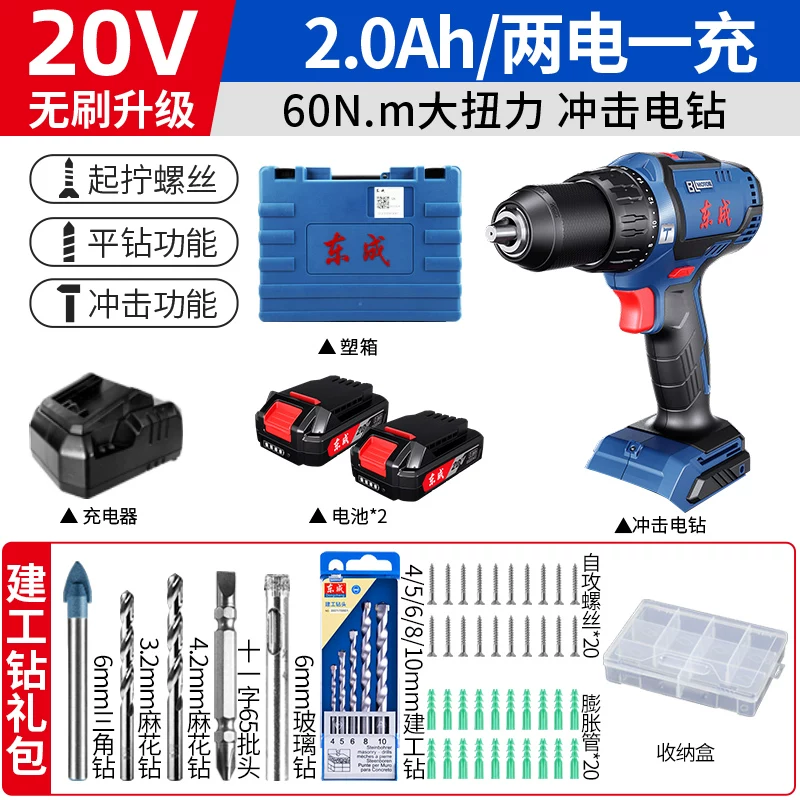 Dongcheng không chổi than tác động máy khoan điện lithium có thể sạc lại máy khoan cầm tay nhỏ máy khoan súng lục gia dụng đa chức năng búa điện Máy khoan vặn vít điện máy khoan khóa Máy khoan đa năng