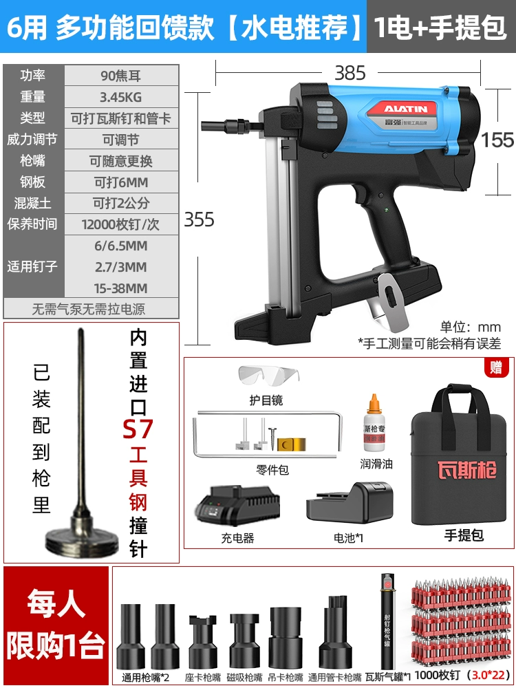 Phân loại màu sắc: [1 Điện] Giảm giá khi sử dụng một lần + tặng 1.000 đinh, 1 chai gas + túi xách [Khuyến nghị cho cửa và cửa sổ] [2 Điện] Giảm giá khi sử dụng một lần + nhận 1.000 đinh, 1 chai gas + túi xách [Khuyến nghị cho cửa ra vào và cửa sổ] [1 Điện] 】Phản hồi đa năng + nhận 1000 đinh cho 1 chai gas + túi xách [khuyến nghị điện nước] [2 điện] phản hồi đa năng + nhận 1000 đinh cho 1 chai gas + túi xách [khuyên dùng điện và nước] [2 điện] mẫu nâng cao sử dụng một lần + chốt bắn miễn phí / 2000 đinh 3 chai gas + túi xách [khuyên dùng cho cửa ra vào và cửa sổ] [2 điện] mẫu nâng cấp đa năng + chốt bắn miễn phí / 2000 đinh 3 chai gas + túi xách [khuyên dùng điện và nước] [2 điện] mẫu nâng cao đa năng + chốt bắn miễn phí / 2000 đinh 3 chai gas + túi xách [khuyên dùng cho nước và điện] [2 pin] 9 vòi tăng cường mô hình + chốt bắn miễn phí/2000 đinh 3 chai gas + hộp nhựa [nên dùng nước và điện]