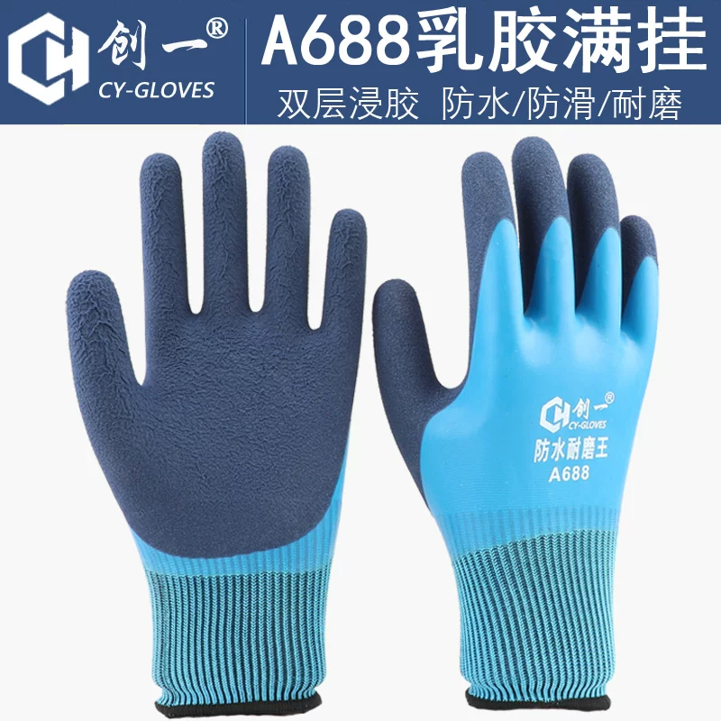 Găng tay, bảo hộ lao động, đồ chống mài mòn, nam giới làm việc tại công trường, nhúng, dán keo, đai lao động, cao su chống trượt, cao su mỏng, mủ cao su găng tay chịu nhiệt găng tay đa dụng 3m