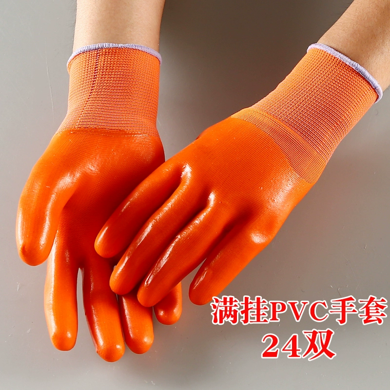 bao tay cách nhiệt Găng tay bảo hộ lao động Jiahu Nhiều màu sắc PVC được dán hoàn toàn bằng cao su nhúng dày Tăng cường bảo vệ Găng tay cao su làm việc chịu dầu bao tay lao dong găng tay sợi trắng