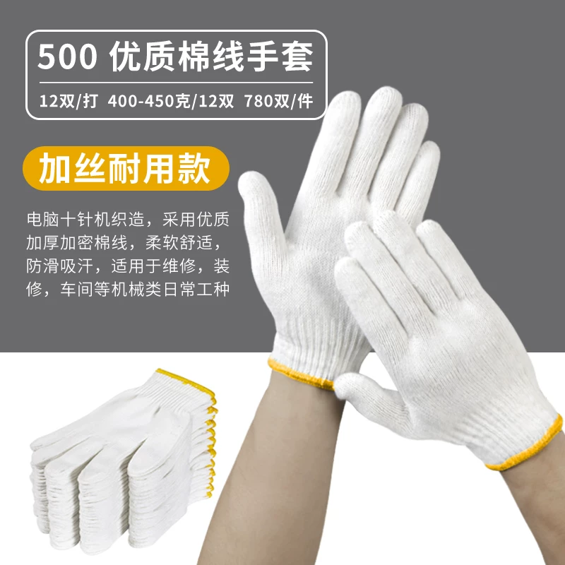 Găng tay chỉ, bảo hộ lao động, lao động chịu mài mòn, bông nguyên chất, công nhân nam, vật tư sợi bông trắng, nylon dày, bách khoa toàn thư công trường xây dựng gang tay lao dong tot nhat găng tay thợ hàn