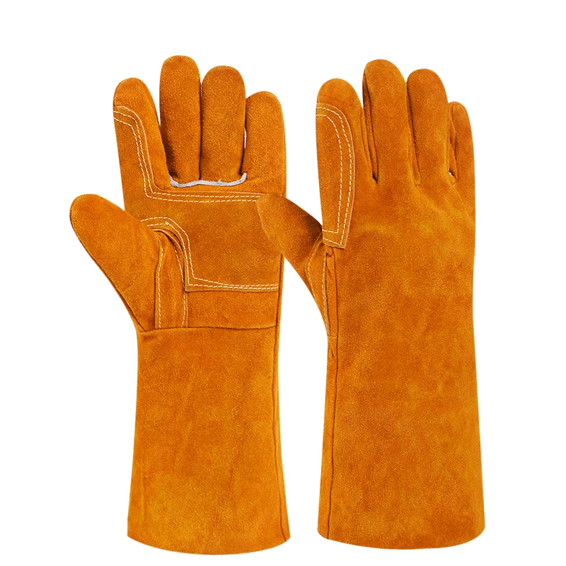 Găng tay hàn, liền mạch, chống mài mòn, chống bỏng, chịu nhiệt độ cao, bảo hộ lao động bằng da bò nguyên chất dày, bảo vệ thứ cấp mềm cho thợ hàn ao lao dong quần áo chống cháy