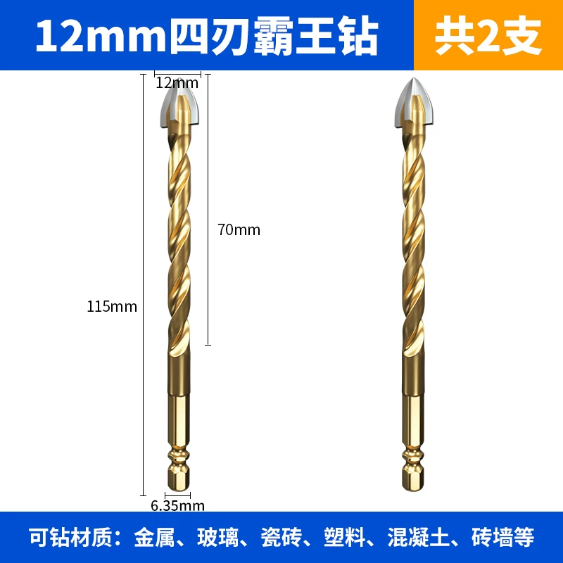 mũi khoan 2 tầng Gốm gạch khoan bit thép vonfram bốn lưỡi tác động Overlord máy khoan điện tay cầm lục giác bê tông tam giác lớn đầy đủ thủy tinh đặc biệt mũi khoan lỗ tròn mũi khoan khoét lỗ gỗ Mũi khoan