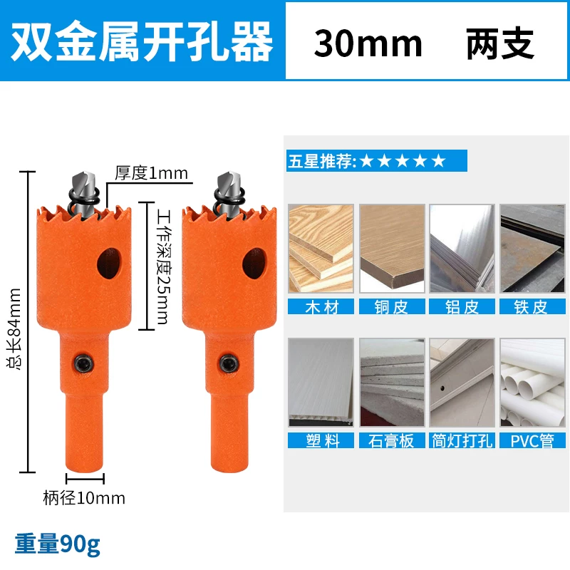 Lỗ mở chế biến gỗ lưỡng kim bộ tấm thạch cao nhựa đục lỗ sắt tấm 75mm đèn PVC reaming mũi khoan 7.5 mũi khoét lỗ tròn mũi khoan bản lề Mũi khoan