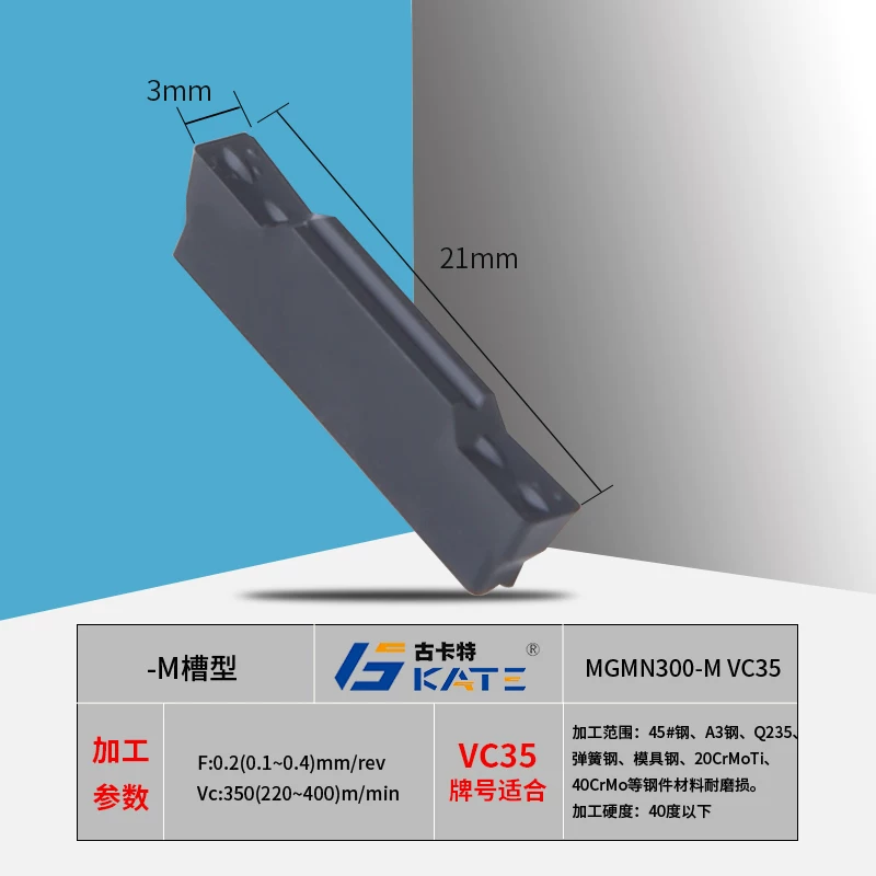 Phân loại màu: MGMN150-G (đối với thép) 1,5mm MGMN150-G (đối với thép không gỉ) 1,5mm MGGN150-X (đối với thép) 1,5mm MGMN200-G (đối với thép) 2 mm MGMN200-G (đối với thép không gỉ) 2 mm MGGN200 - X (đối với thép) 2 mm MGMN200-T VM65 (đối với thép cứng và tôi) MGMN250-G (đối với thép) 2,5 mm MGMN300-M (đối với gang) 3 mm MGGN250-X (đối với thép và thép không gỉ) 2,5 mm MGMN300 -M (đối với thép) 3 mm MGMN300-M (đối với thép không gỉ) 3 mm MGMN300-G VM65 (đối với thép cứng và thép tôi) MGMN300-M (đối với thép cứng và mềm) 3 mm MGGN300-X (đối với thép) 3 mm MGGN300-X (đối với thép và thép không gỉ) 3mm MGMN400-M (đối với thép) 4mm MGMN400-M (đối với thép không gỉ) 4mm MGGN400-X (đối với thép và không gỉ) 4mm MGGN400-X (đối với thép) 4mm MGMN400-M VM65 (đối với thép cứng) Đối với thép cứng) MGMN500-M (đối với thép) 5 mm MGMN500-M (đối với thép không gỉ) 5 mm MGMN250-M VM65 (đối với thép cứng)