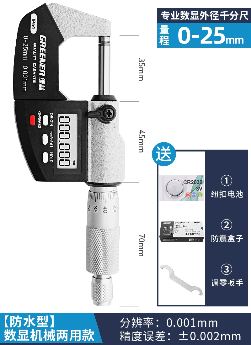 Phân loại màu sắc: ?Các sản phẩm sau hỗ trợ [thay thế khi bị mòn & không hoàn lại tiền & bảo hành trọn đời] ?Mẫu hai nút hiển thị kỹ thuật số 0-25mm [độ phân giải 0,001mm] Mẫu màn hình kỹ thuật số 0-25mm [độ phân giải 0,001mm] kỹ thuật số 0- 25mm kiểu màn hình [độ phân giải 0,001mm] đi kèm với kiểu màn hình kỹ thuật số cơ sở 0-25mm [độ phân giải 0,001mm] (có báo cáo thử nghiệm và đo lường của bên thứ ba) kiểu màn hình kỹ thuật số 0-25mm [độ phân giải 0,001mm] (có báo cáo thử nghiệm đo lường của bên thứ ba) ) Đi kèm với mô hình màn hình kỹ thuật số cơ sở 25-50mm [độ phân giải 0,001mm] mô hình chính xác chống nước 0-25mm [độ phân giải 0,001mm] mô hình chính xác chống nước 0-25mm [độ phân giải 0,001mm] đi kèm với mô hình chính xác chống nước 0-25mm [Độ phân giải 0,001mm] ] (? Với báo cáo thử nghiệm và đo lường của bên thứ ba) Mẫu chính xác và chống nước 0-25mm [Độ phân giải 0,001mm] (? Có báo cáo thử nghiệm) Mẫu chính xác và chống nước 25-50mm [Độ phân giải 0,001mm] Mẫu chính xác chống nước 25-50mm [ độ phân giải 0,001mm] (có báo cáo thử nghiệm và đo lường của bên thứ ba) Mẫu có độ chính xác chống nước 50-75mm [độ phân giải 0,001mm] Mẫu có độ chính xác không thấm nước 75-100mm [độ phân giải 0,001mm] Mẫu có hai mục đích có độ chính xác 0-25mm [ Độ phân giải 0,001mm] 25 Loại mục đích kép chính xác -50mm [Độ phân giải 0,001mm] Loại mục đích kép chính xác 50-75mm [Độ phân giải 0,001mm] Loại mục đích kép chính xác 75-100mm [Độ phân giải 0,001mm] Loại mục đích kép chính xác 100-125mm Loại [độ phân giải 0,001 mm] Loại mục đích kép chính xác 125-150mm [độ phân giải 0,001mm] Loại mục đích kép chính xác 150-175mm [độ phân giải 0,001mm] Loại mục đích kép chính xác 175-200mm [độ phân giải 0,001mm] Độ chính xác 200-225mm Loại mục đích kép [ độ phân giải 0,001mm] Loại mục đích kép chính xác 225-250mm [độ phân giải 0,001mm] Loại mục đích kép chính xác 250-275mm [độ phân giải 0,001mm] Loại mục đích kép chính xác 275-300mm [độ phân giải 0,001mm] Loại độ dày thành 0- 25mm [ độ phân giải 0,001mm] Loại trống thắt lưng có độ dày thành 0-25mm [độ phân giải 0,001mm] Đầu tròn đôi có độ dày thành 0-25mm [độ phân giải 0,001mm] Đầu nhọn đơn 0-25mm [độ phân giải 0.001mm] Đầu đôi 0-25mm [độ phân giải 0,001mm] Đầu phẳng chiều cao uốn 0-25mm [độ phân giải 0,001mm] Bề mặt thể tích nhỏ 0-25mm 1*5 [độ phân giải 0,001mm] Bề mặt thể tích nhỏ 0-25mm 2*5 【Độ phân giải 0,001 ừm]