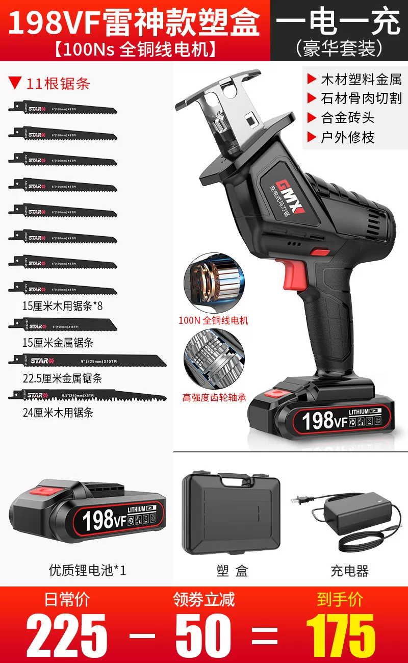 Máy cưa cầm tay điện Lithium gia đình nhỏ cầm tay điện khai thác gỗ saber cưa có thể sạc lại qua lại cưa xương thịt ngoài trời may khoan mini Máy khoan đa năng