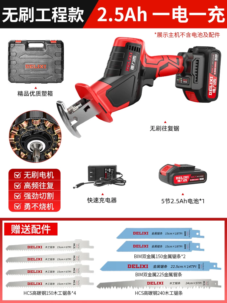 Máy cưa kiếm điện không chổi than Delixi cưa qua lại cưa hộ gia đình Máy cưa điện cầm tay nhỏ có thể sạc lại cưa gỗ khoan bê tông bosch Máy khoan đa năng