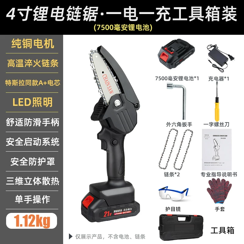 Máy cưa xích điện hộ gia đình nhỏ cầm tay khai thác gỗ có thể sạc lại ngoài trời lithium điện lưỡi cưa xích điện cao cấp cưa củi máy mài lưỡi cưa xích Máy cưa xích