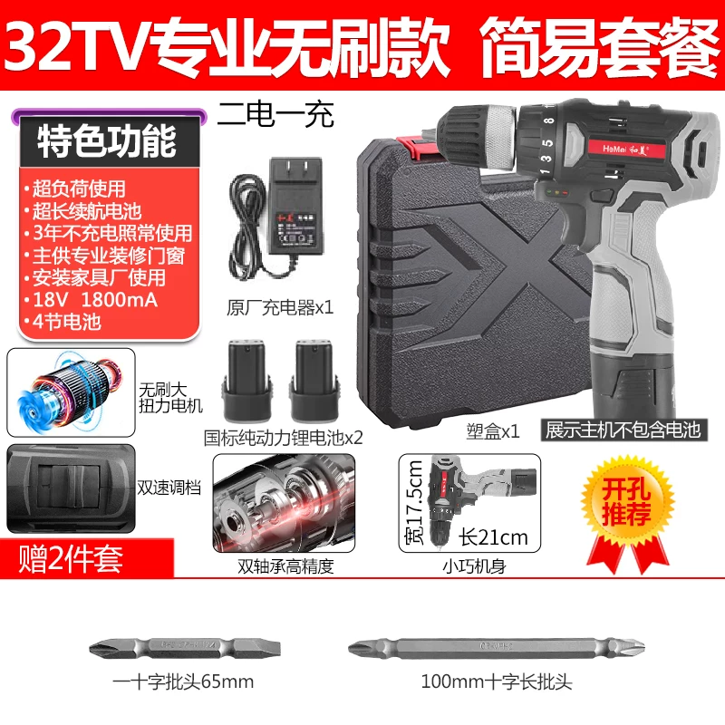 Máy khoan cầm tay có thể sạc lại Hemei không chổi than Máy khoan tác động lithium-ion Máy khoan vặn vít điện đa chức năng máy khoan súng lục gia dụng Máy khoan đa năng