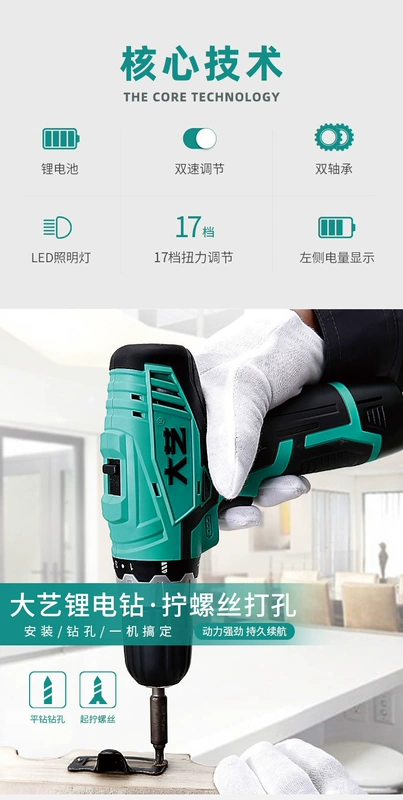 Máy khoan cầm tay Dayi biến pin lithium có thể sạc lại máy khoan súng lục máy khoan cầm tay điện máy khoan vặn vít dụng cụ điện gia dụng đa chức năng máy khoan tường Máy khoan đa năng