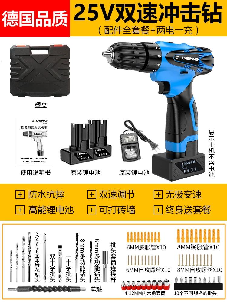 Máy khoan cầm tay Zheden lithium-điện để sạc lại máy khoan súng lục tác động máy khoan cầm tay Máy khoan vặn vít gia dụng đa chức năng máy khoan bê tông Máy khoan đa năng