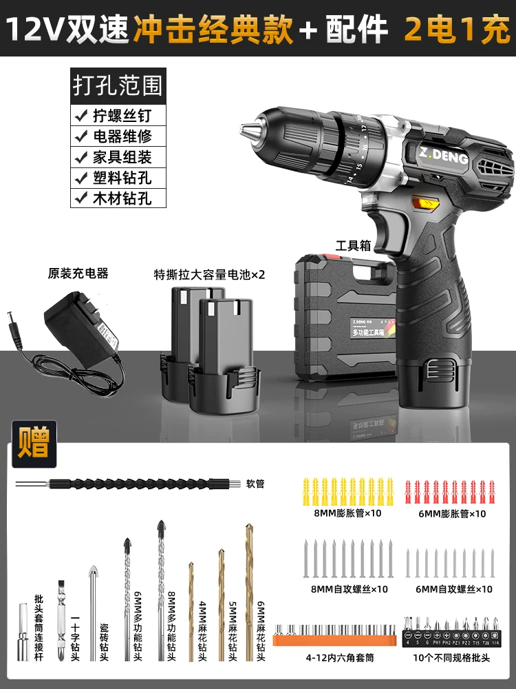 Máy khoan điện gia dụng Máy khoan vặn vít cầm tay có thể sạc lại đa chức năng Máy khoan tác động điện lithium-điện Máy khoan súng lục Máy khoan điện Máy khoan đục lỗ khoan bê tông pin Máy khoan đa năng