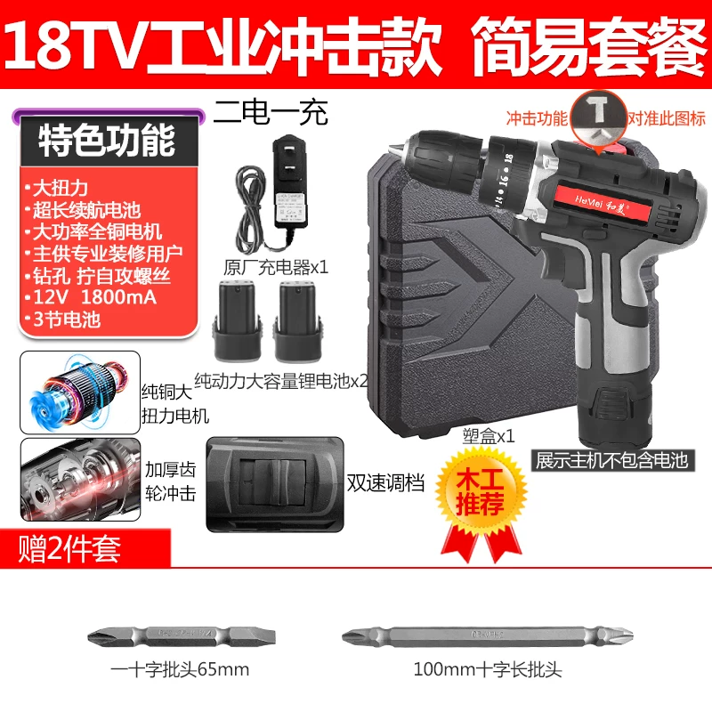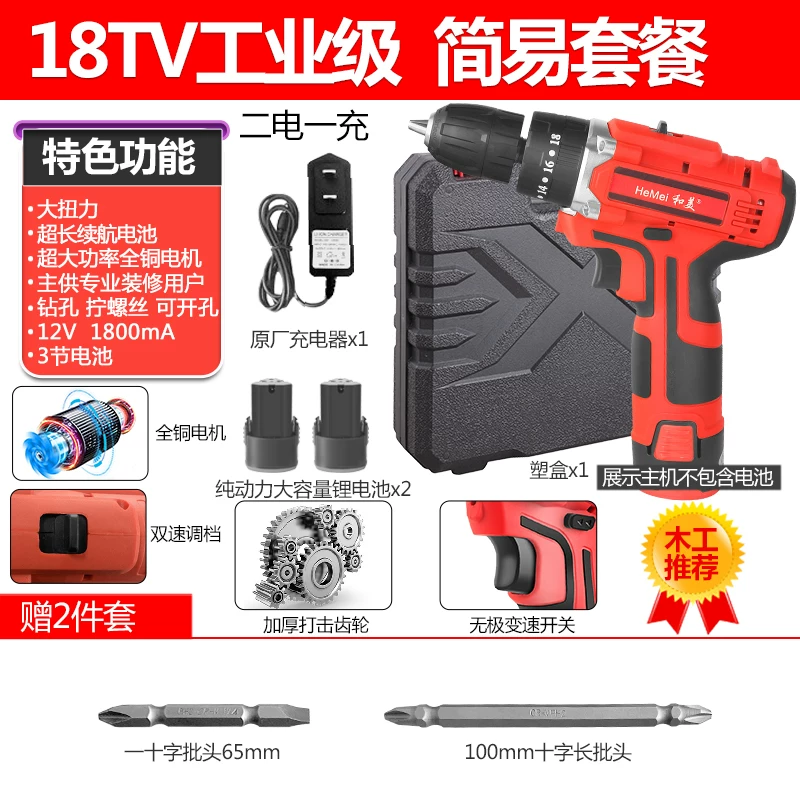 Máy khoan vặn vít cầm tay Hemei Máy khoan điện gia dụng có thể sạc lại không chổi than lithium điện búa máy khoan va đập máy khoan điện cầm tay có thể sạc lại may khoan makita Máy khoan đa năng