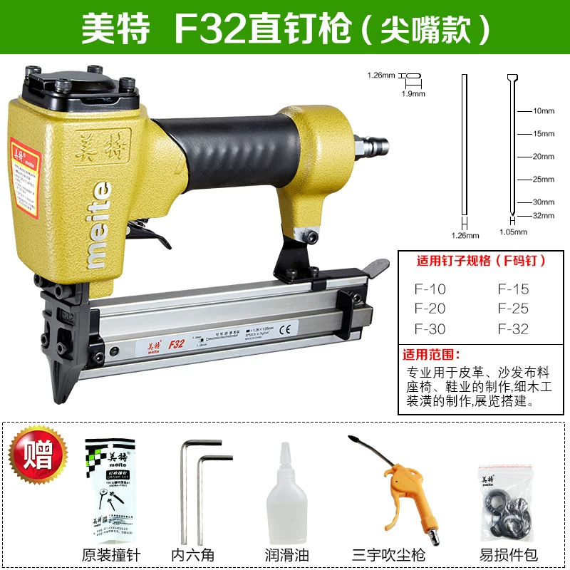Meite F32 khí nén súng bắn đinh thẳng mộc f30 súng bắn đinh thép súng bắn đinh khí súng bắn đinh trang trí mã công cụ súng bắn đinh T50 máy bắn đinh bê tông dùng pin
