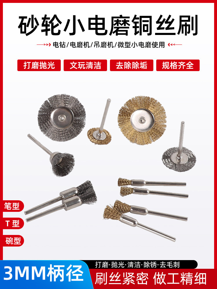 Miễn phí vận chuyển 3MM tay cầm mini dây thép không gỉ dây đồng bàn chải máy mài điện treo máy xay loại bỏ rỉ sét đánh bóng bàn chải đá mài nước Đá mài