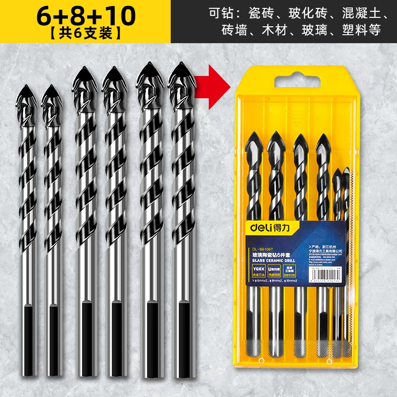 Mũi khoan gạch đa năng mạnh mẽ 6MM hợp kim siêu cứng hình tam giác quay đầu đấm kính bê tông xi măng nghề mộc máy khoan bosch chính hãng Máy khoan đa năng
