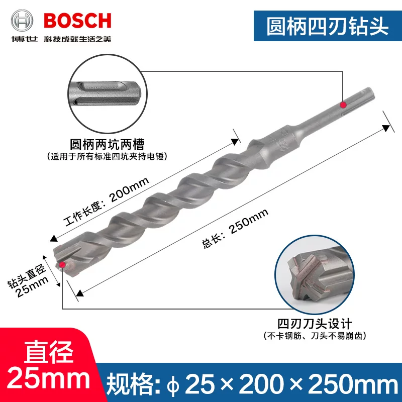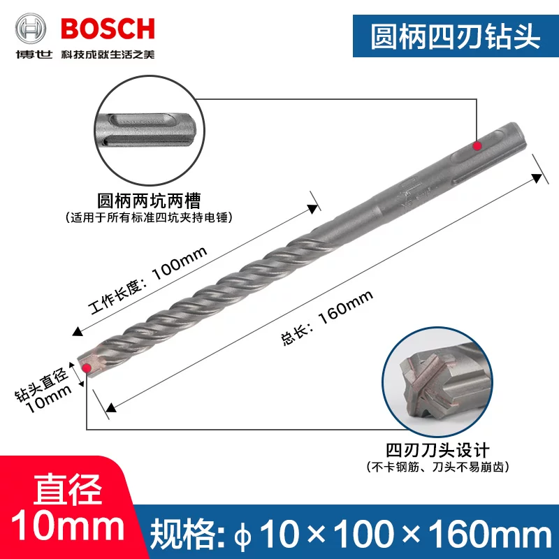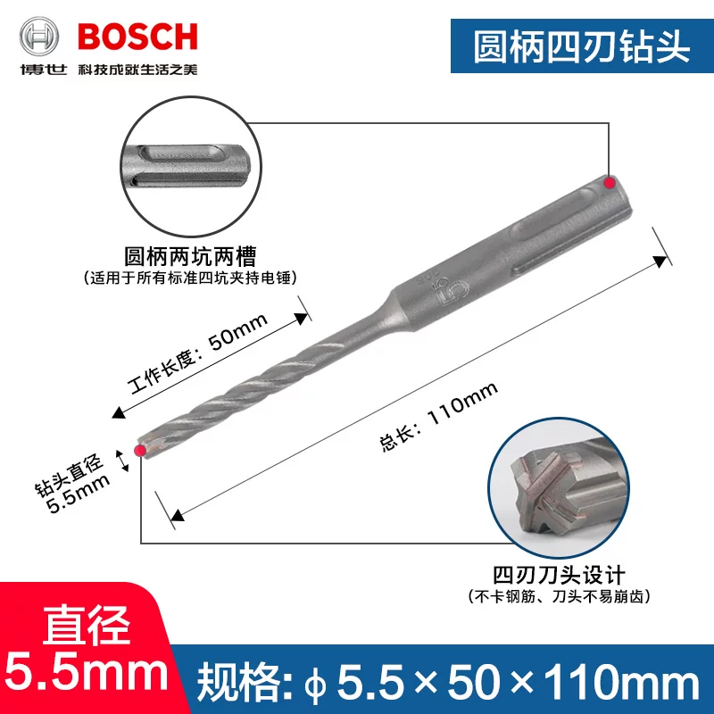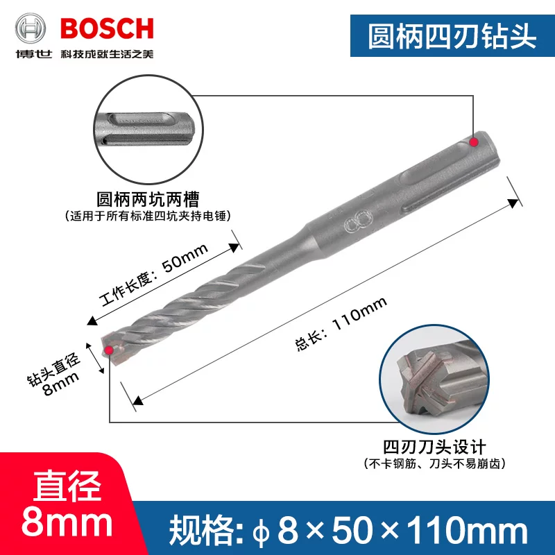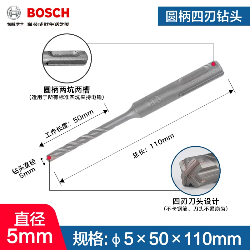 Mũi khoan va đập 4 lỗ 5-series Bosch bosch tay cầm tròn Mũi khoan va chạm bê tông Dr.Búa điện 4mm Máy khoan đa năng