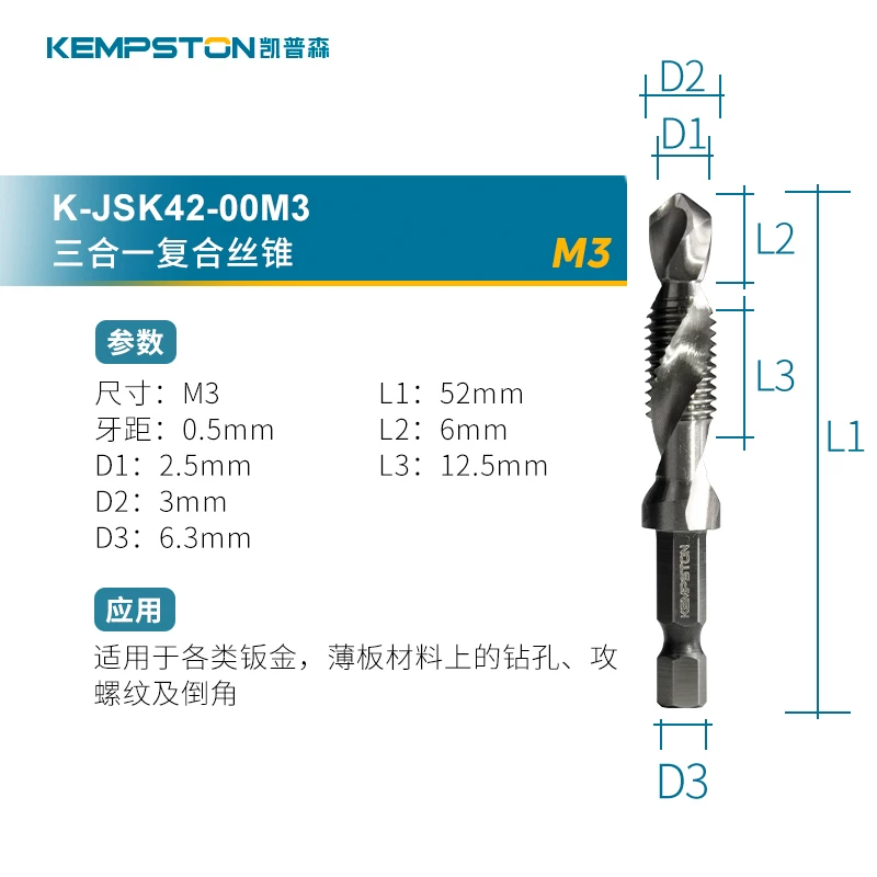 Mũi taro tổng hợp ba trong một Capson, chuôi lục giác, khoan, tarô, vát cạnh, tarô tarô tích hợp, mũi khoan, tarô máy xoắn ốc mũi khoan lỗ tròn mũi khoét Mũi khoan