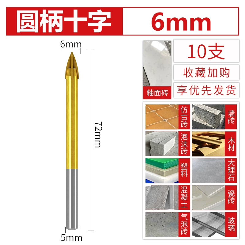 lưỡi cưa sắt cầm tay Ngói mũi khoan 6mm Bộ hợp kim gốm thủy tinh bê tông cầm tay đặc biệt đục lỗ khoan tam giác lỗ mở máy cắt hợp kim lưỡi cắt sắt hợp kim Lưỡi cắt sắt