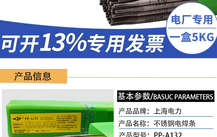 Sức mạnh điện của Thượng Hải PP-A132 Dải hàn bằng thép không gỉ E347-16 Hàn chung của máy hàn chung 2.5/3.2/4.0 que hàn chì