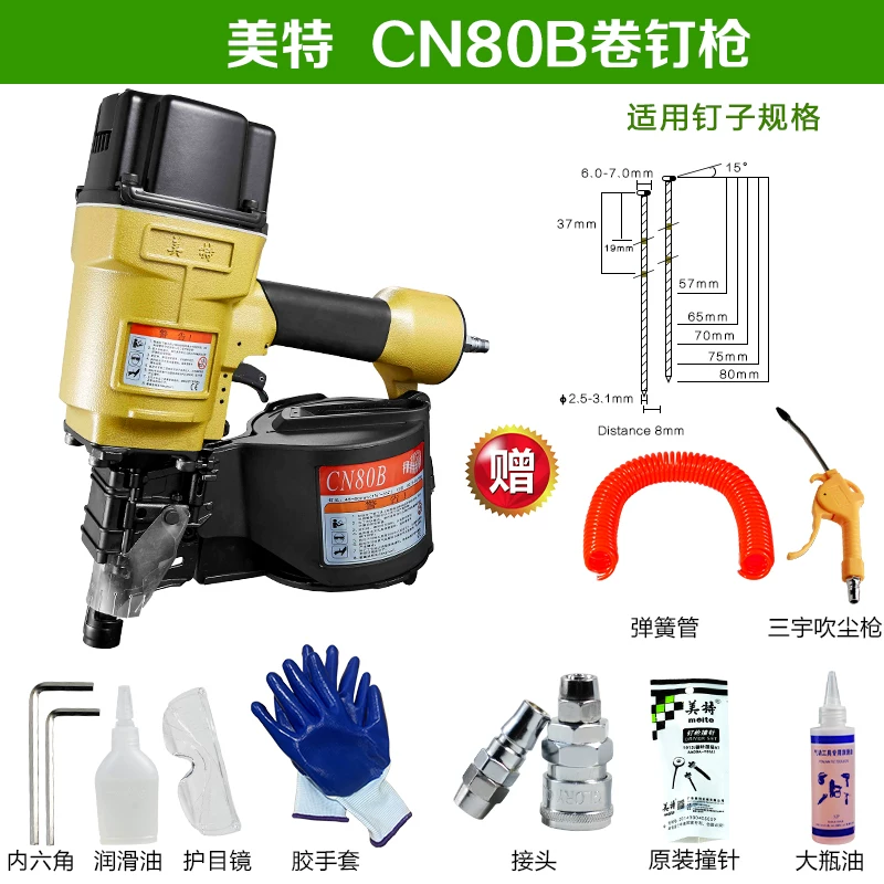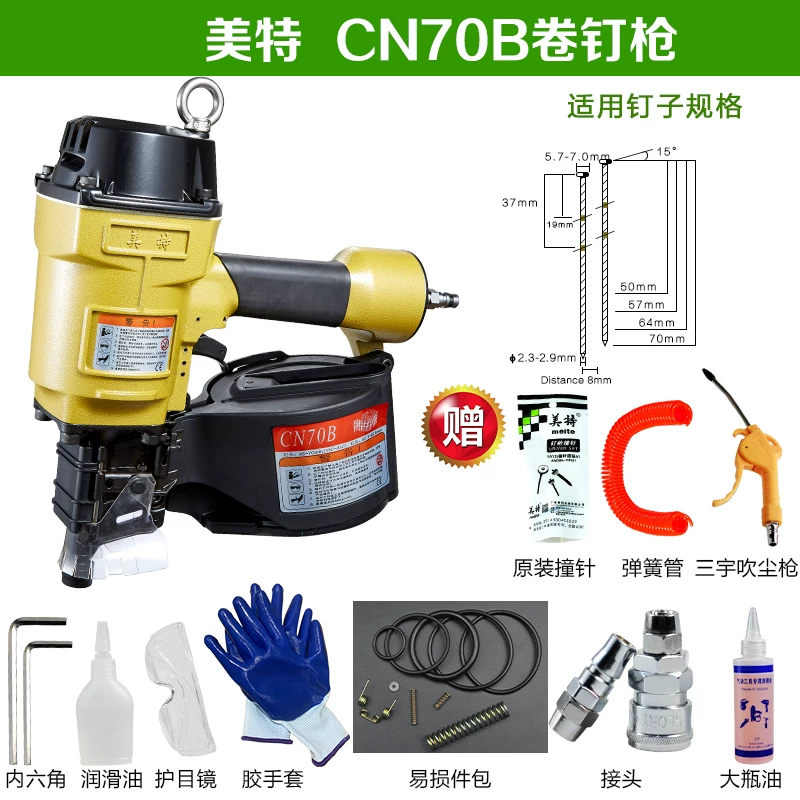 Súng bắn đinh cuộn Meite bằng khí nén súng bắn đinh cuộn cn55CN7080B130 hộp pallet gỗ mộc đinh lấy súng hơi bắn đinh