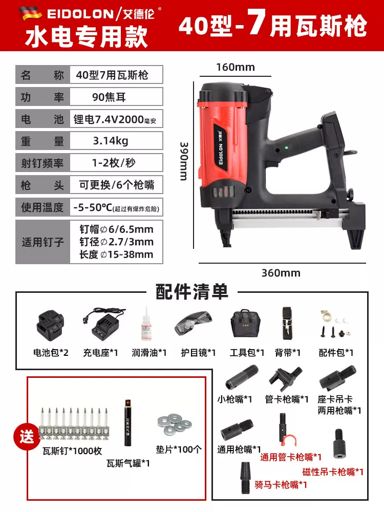 Phân loại màu sắc: Loại 40 - súng gas dùng một lần (năng lượng 90 Joules) [Mẫu chuyên nghiệp cho lắp đặt điện nước] Loại 40 - súng gas dùng một lần (cường độ có thể điều chỉnh) Loại 50 - súng gas dùng một lần (năng lượng 100 Joules) Loại 50 - Súng hơi dùng một lần (Năng lượng 100 Joules) Phiên bản nâng cấp loại 50 Súng hơi dùng một lần (Năng lượng 120 Joules)