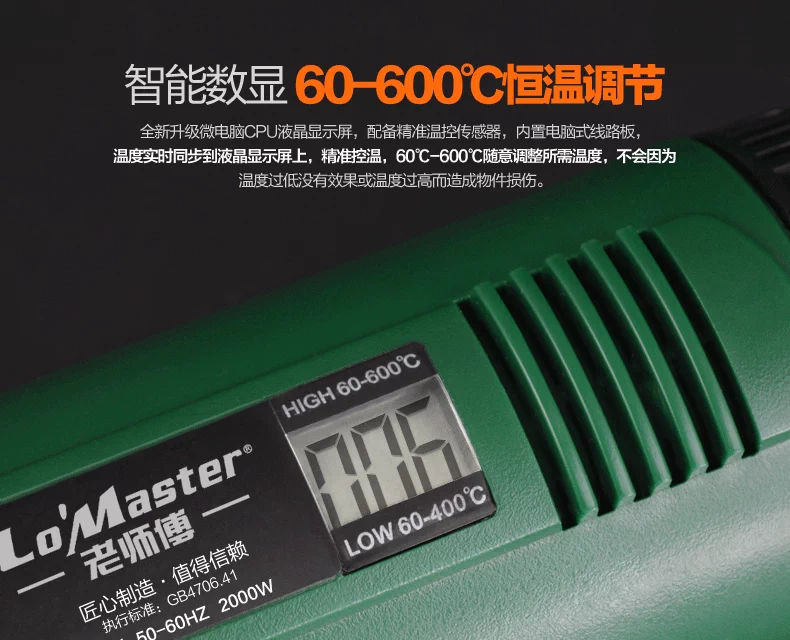 Súng hơi nóng điều chỉnh nhiệt độ, màn hình kỹ thuật số, màng xe hơi, súng nướng bánh gia dụng, súng sấy màng co nhiệt, máy sấy tóc công nghiệp, súng hàn nhựa máy khò laser