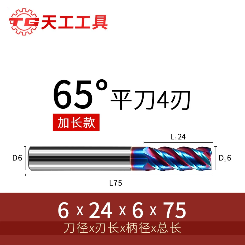 Tiangong 65 độ thép vonfram dao phay cacbua 4 lưỡi phủ dao phẳng CNC CNC công cụ kéo dài đáy phẳng cuối cối xay mũi khoét sắt Mũi khoan